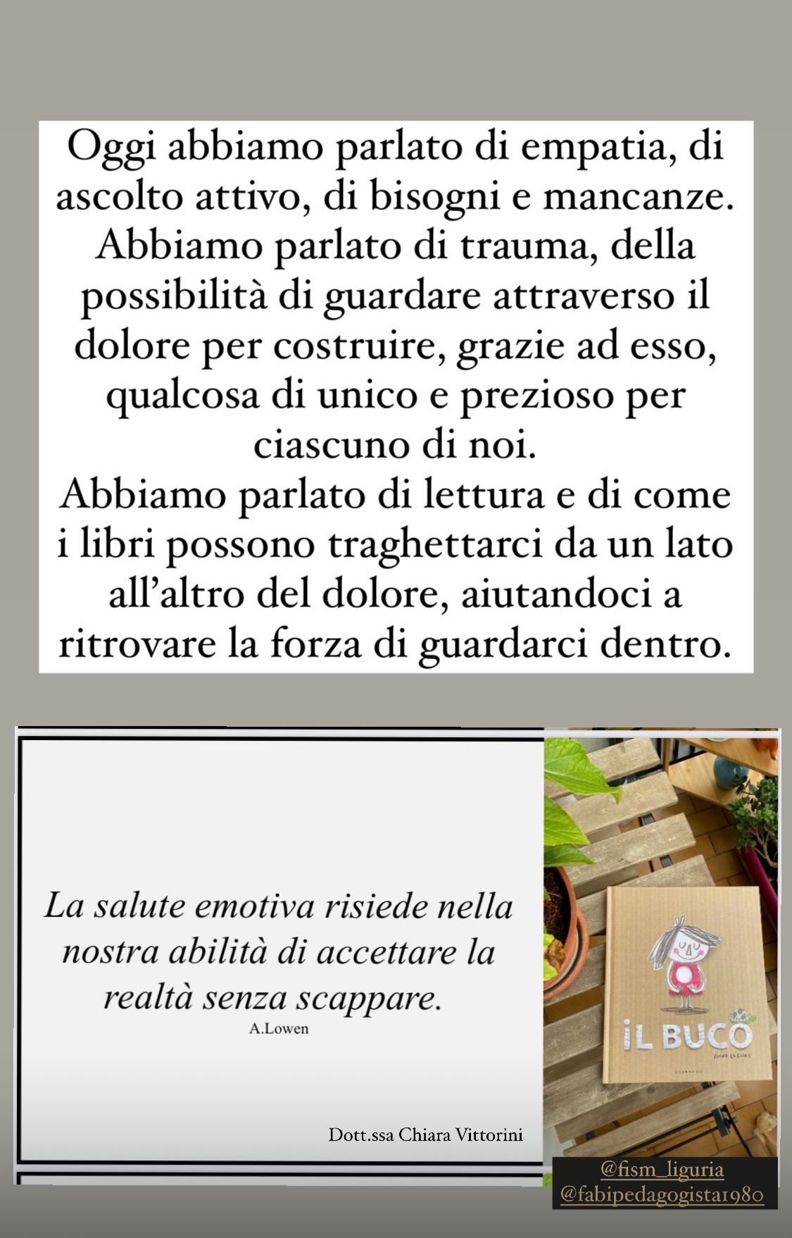 Verranno trattati i temi dell’ascolto attivo, della condivisione in gruppo e della gestione dei contenuti emotivi che emergono durante la lettura di un testo narrativo.